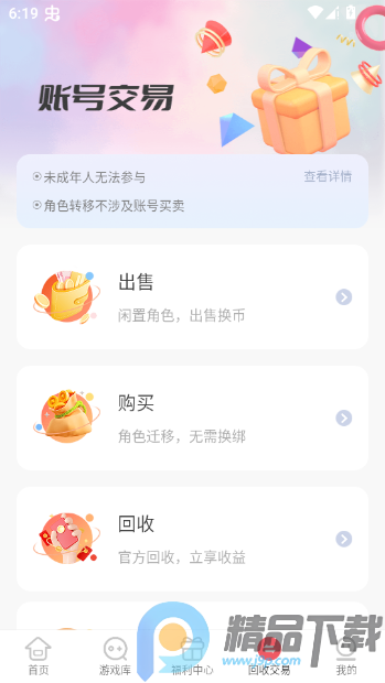 3、切换到回收交易页面有出售、购买、回收、转游服务可以使用;