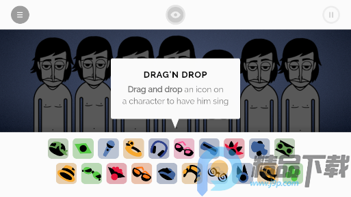 拖拽音效:在创作界面,屏幕下方排列着各种音乐元素,如鼓点、旋律片段、和声等,玩家需将这些元素拖动到人物身上,为其赋予不同音效。