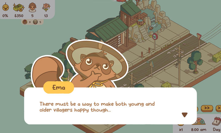 4.互动性强:关注村民生活点滴,根据他们的看法和建议调整街道,还能邂逅可爱的貉子和猫咪。