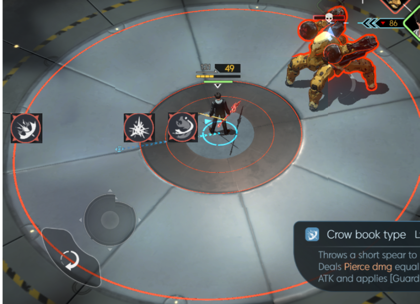 一般推荐通关[8-4]后带【暗鸦飞矛】,如上图所示,7米的射程远超另外2种平A,减少自身移动的同时,消耗敌方反击次数,避免吃反击。虽然多了15点行动力额外消耗,但实战比另外2种平A好用的多。