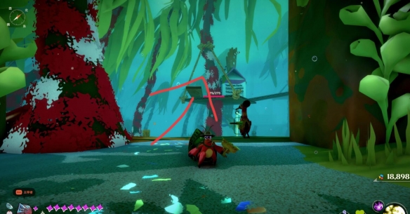1、到漂流物之谷位置跳上去,具体位置点如下图;