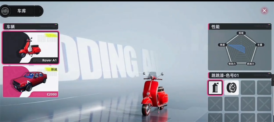 • 车库:核心玩法之一,可买车、改装(改颜色、外形),后续会新增更多车型。