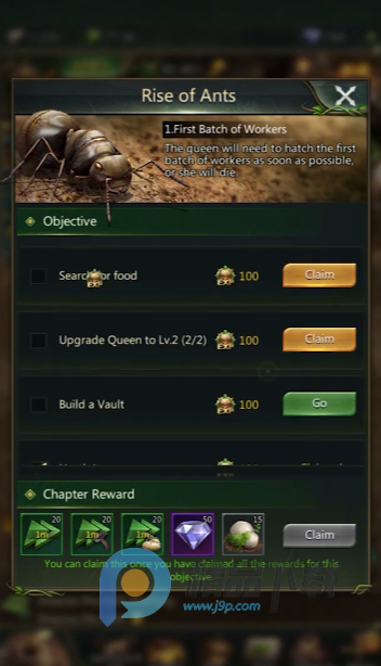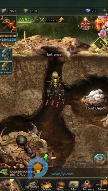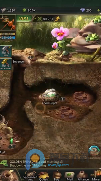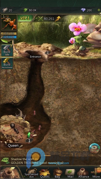 资源采集与管理:玩家需指挥工蚁收集食物、水源等基础资源,合理分配至巢穴建设、兵蚁孵化或科技研发,确保族群生存与扩张。